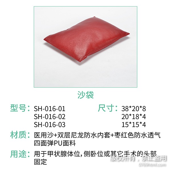 這款海綿體位墊與市面上的體位墊有所不同,在這款產品外套中,所選用的是棗紅色的四面彈面料,為了讓患者能夠更為舒適,所選用的海綿都是較為適合的高彈力海綿、記憶棉等,再者,因為術中所用體位有所不同,蒙泰也對于術中常用的幾個體位設計了多種海綿體位墊體位管理解決方案,如果您想要了解更多的海綿體位墊的方案,那就快來蒙泰咨詢吧!