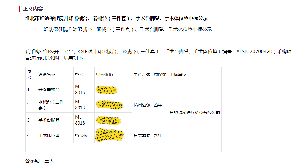 淮北市婦幼保健院手術(shù)體位墊中標(biāo)后進(jìn)院清單